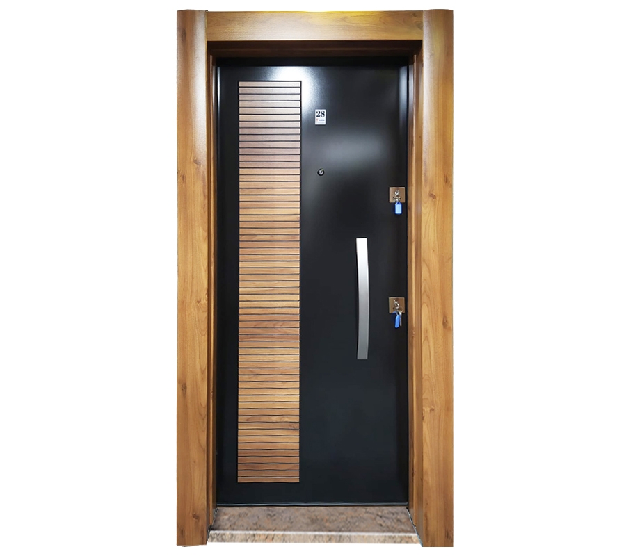 3459 Ahşap Kaplama Kabartma Model Çelik Kapı
